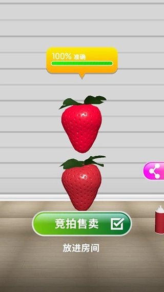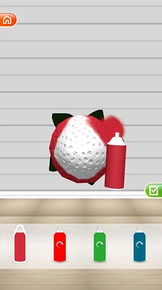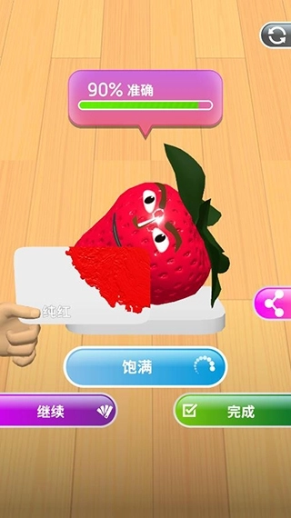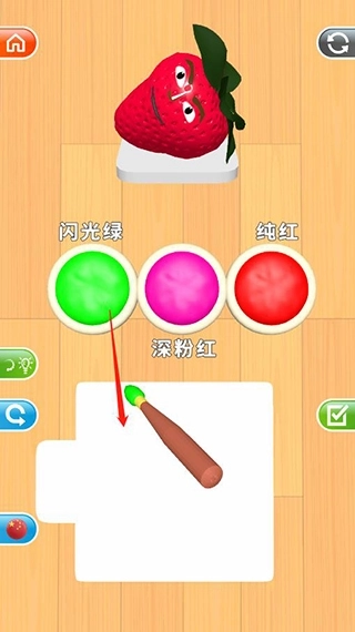 纯红→深粉红→再点一次纯红,就能合成100%的深红色草莓啦