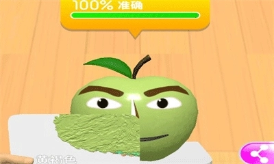按顺序点击橙红色、纯黄、再次点击纯黄、宝石碧绿、浅鲑鱼肉色、宝石碧绿,就能合成出100%的黄褐色青苹果啦。