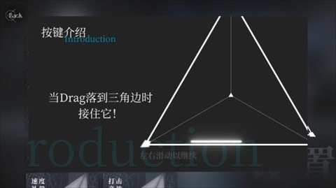 4、三角形判定界面的设计颇具特色,玩家需要借助三角形的三个顶点或边缘来点击音符。