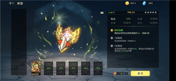 神器具有强大力量,不仅可以给英雄提供基础属性加成。不同的神器还有不同的固有技能。可以用于给不同类型的英雄提供增益,在神器培养到一定星级以后,还可以同时给多个英雄进行加持。