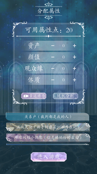 5、对属性点进行分配,属性点关乎角色的养成走向,每次事件选择都会依据属性点得出相应结果。