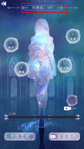 2、点击升级灵魂,可以使用闪耀值来进行灵魂升级