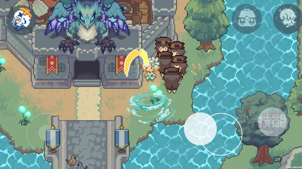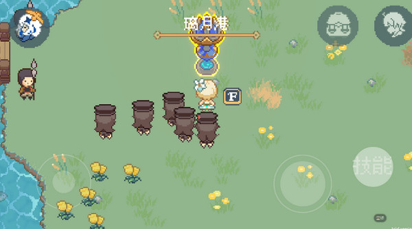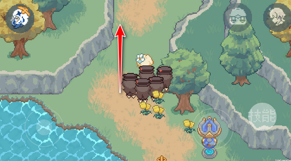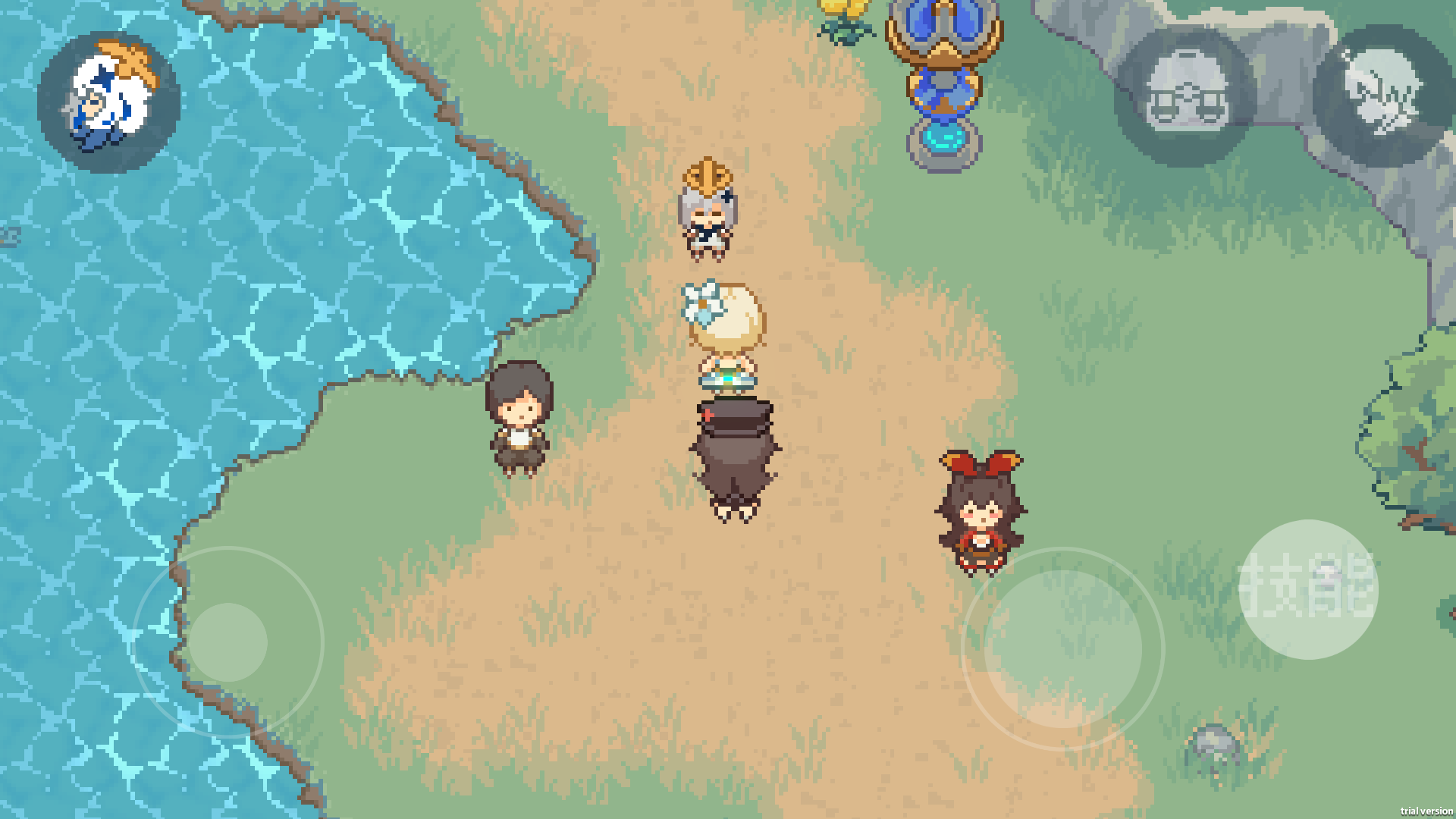 1、像素风的原神与原版原神游戏存在差异,在像素风原神里打风魔龙需先完成一些前置剧情任务,我们从出生点起步向前走。