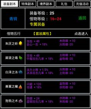 该阶段装备为专属装备,因此各系只需要选择本五行对应的副本打怪升级即可。考虑到30级有两件戒指需要打造,在打齐本系装备后,也可以去打木和土材料,用作30级戒指的相生材料。