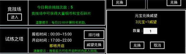 完成前期准备,开局打25级副本,早日到30级,将竞技场打上去,然后开服第二天在下午3点之前尽量等级提升到35级,这样可以报名试练塔,获取威望,当然也可以直接元宝兑换威望值。