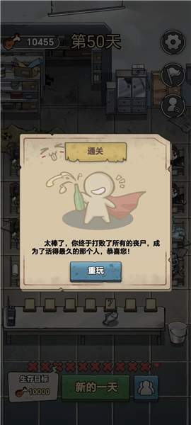 美术品质处于中等水平,2DQ版卡通风格与末日题材搭配起来,感觉稍显违和,其中还融入了部分恶搞元素。游戏界面数量不多,动态效果表现普通,存在一些可点击的小事件,不过它们对玩法的影响较为有限。界面设计较为常规,玩家理解和认知起来没有太大难度。
