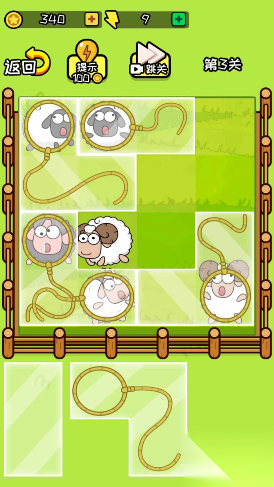 2、要是某一种操作方式没办法解救小羊,别只盯着它,不妨从不同角度去思考,比如改变画线的位置、调整拖动砖块的顺序等等。