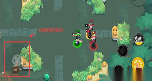 1、下载安装完成后进入游戏,游戏中采用了虚拟摇杆,通过虚拟摇杆来控制角色的移动。