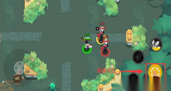 2、我们角色的普通攻击在一级时便已具备,点击右侧按钮即可发动普通攻击。