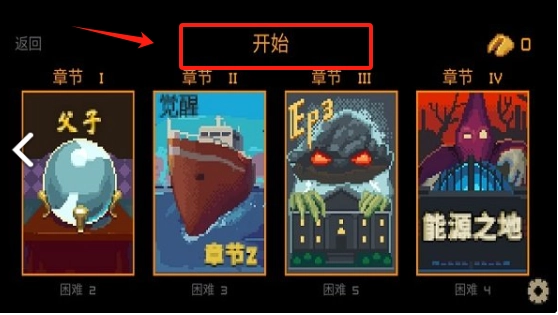 3、点击右上角金色图标旁的'开始'按钮,选择章节I到IV中的一个,难度从2到5不等。