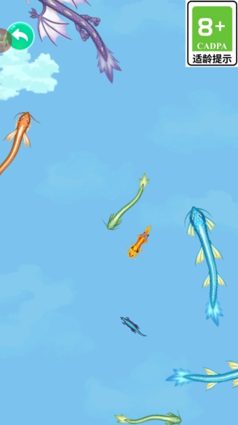 进化系统:当积累到足够的成长值,点击进化按钮便可解锁全新形态,每次进化都将促使小龙的体型增大、能力增强。
