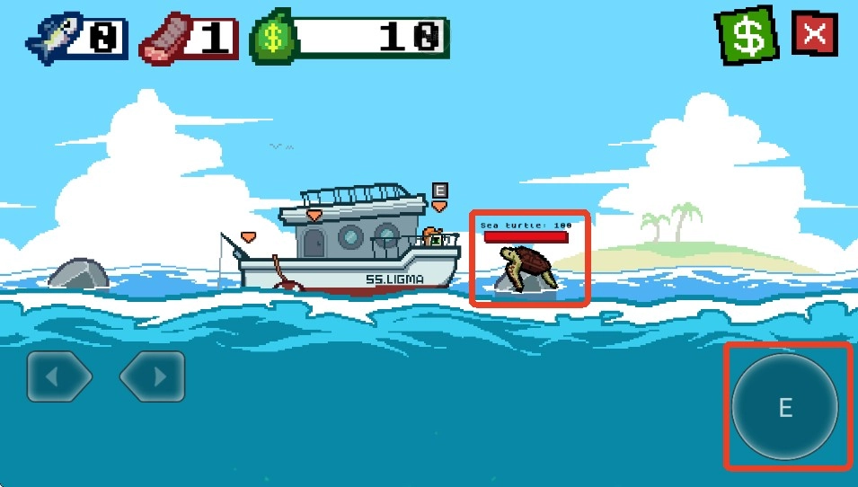 2、利用右下角的控制按钮来掌控鱼钩的方向,精准地撞击目标鱼类从而造成伤害,当伤害值积累到一定程度时,就能成功将鱼钓起。