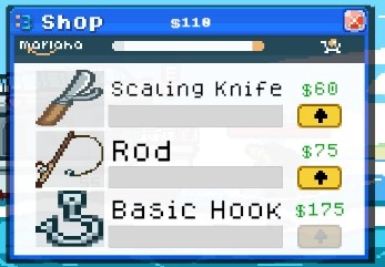 6、轻点右上角按钮,即可进入道具商店。在这里,你能够运用获取到的金币,对鱼钩、钓线以及刀具进行升级,从而提升捕捉效率与收益能力。