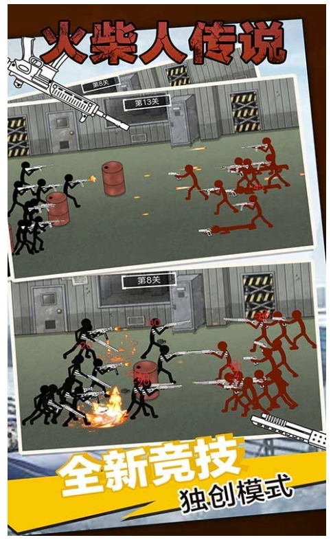 火柴人传说,一款趣味十足的枪战射击游戏。它以高清舒适的画面风格精心打造,巧妙融合当下热门的火柴人枪战与部落战争题材,为你呈现一个惊险刺激的火柴人对战世界,带来超多创新玩法体验。游戏不仅具备丰富多样的背景可供体验,还有无休止的战斗等待你解锁。士兵们配备超现代化武器,从匕首、手枪、冲锋枪,到霰弹枪、自动步枪、连发狙击枪、单发狙击枪、重型狙击枪,再到加特林、迫击炮、火箭筒,甚至坦克、装甲车等应有尽有。通过收获各类强大武器,提升角色实力,你能轻松应对对决,开启毁灭性战斗。感兴趣的玩家千万别错过,随时都能尽情畅玩。