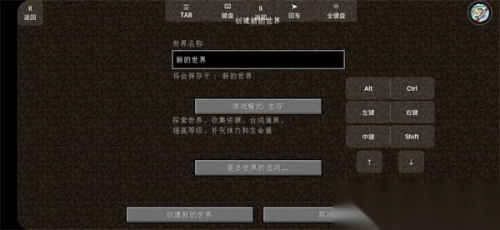 3. 选择游戏模式后,能够选择创建一个新的世界,输入相关信息并开启游戏。