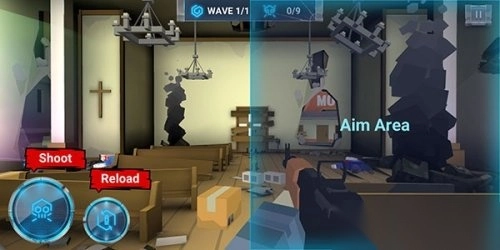 2. 当进入关卡后,通过拖动右侧屏幕能够移动准星,而左侧设有开火按钮与换弹按钮。