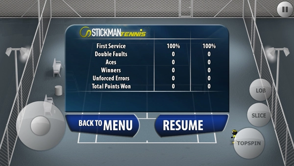 4、进入游戏后,画面如图所示,玩家需要操控火柴人,运用球拍去挥打网球。