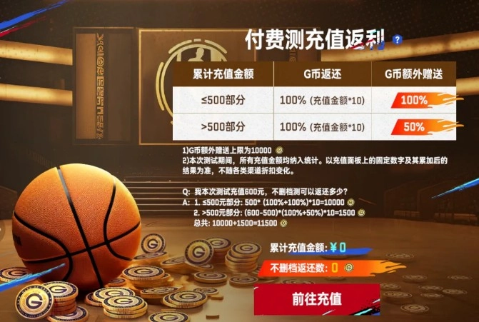 这次充值返利力度相当大,充值500元以下,会额外赠送100%。举个例子,你要是充500元,等不删档测试开启,就能拿到1000元。小编觉得大家充500元就挺合适。根据第一次测试的爆率来看,1000元差不多能让你获得1 - 2个紫卡,2 - 3个金卡,这样在王朝模式里基本能轻松应对。而紫卡能不能突破,就得看各位的运气啦。