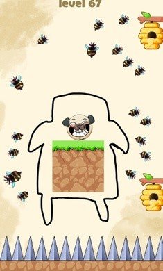 1、轻点屏幕画一条线,帮助狗狗摆脱蜜蜂的攻击:操作时按下并保持,绘制结束后松开手指。注意,画出的绳索不能伤害到你要保护的狗狗。 2、每个关卡可能存在多种答案,每个问题也能有多个回应。试着想出各种新奇、有趣、出人意料,甚至好玩的绘画方法,来解决这些烧脑难题。