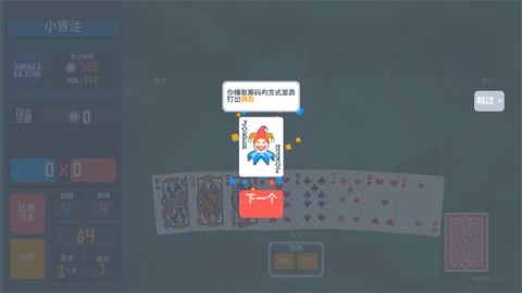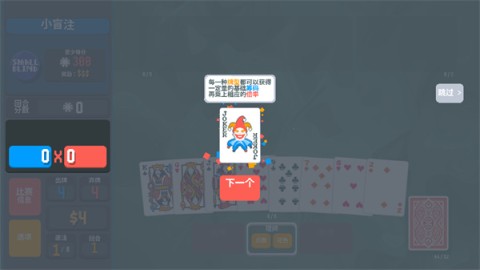 3、选择小盲注进行闯关时,能够凭借打出不同牌型来获取筹码。