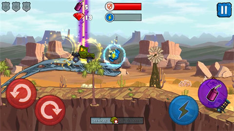 2、玩法与常见的横版摩托车游戏类似,并且在这种游戏里,即便出现翻车情况也不会导致失败。