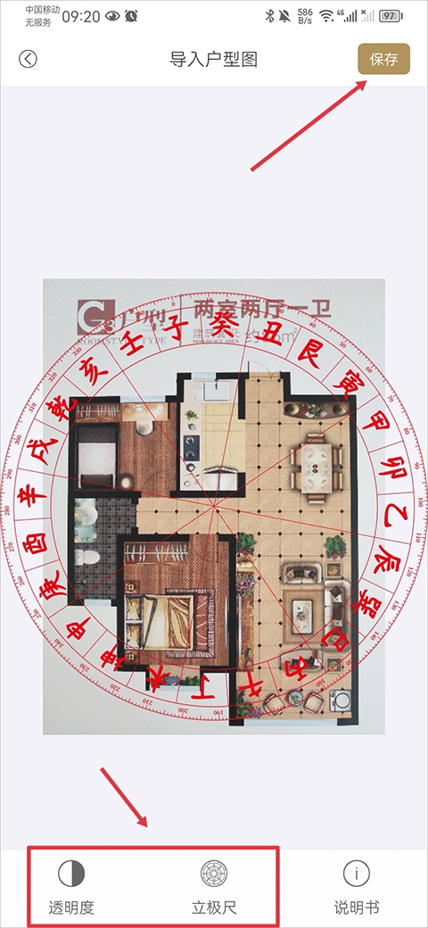 3、完成导入操作后,你能够对罗盘的透明度以及颜色进行调整,调整完毕后,点击界面右上角的保存按钮就可以了。