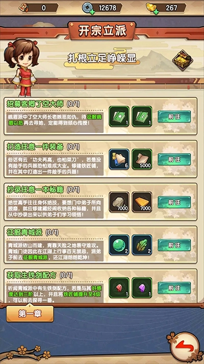 完成对峨眉派的征服后,即可解锁开宗立派。在宗门建设期间,需完成开宗立派相关任务,这也是获取元宝、建造资源、修行资源以及弟子等多种资源的途径之一。