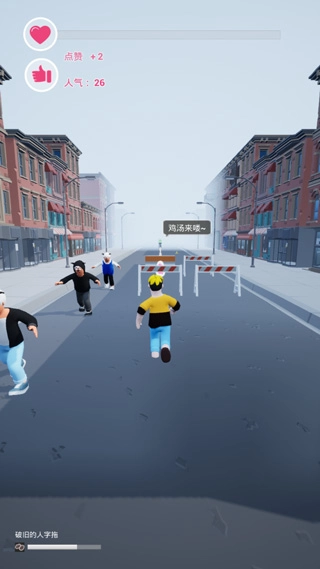 2、接下来便能够开启跑酷之旅,你要操控角色避开障碍物,并收集点赞人气。