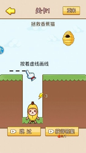 划线小能手是一款超有趣的休闲益智小游戏,玩法类似抖音上超火的救救狗狗。只需画条线,就能帮香蕉猫安全躲开蜜蜂攻击!在这个游戏里,操作特别简单,通过划线就能挡住蜜蜂。可怜的香蕉猫,头顶有个马蜂窝,快用聪明的脑袋,以划线的方式把马蜂窝隔绝开,保护香蕉猫。感兴趣的朋友,赶紧来玩呀!