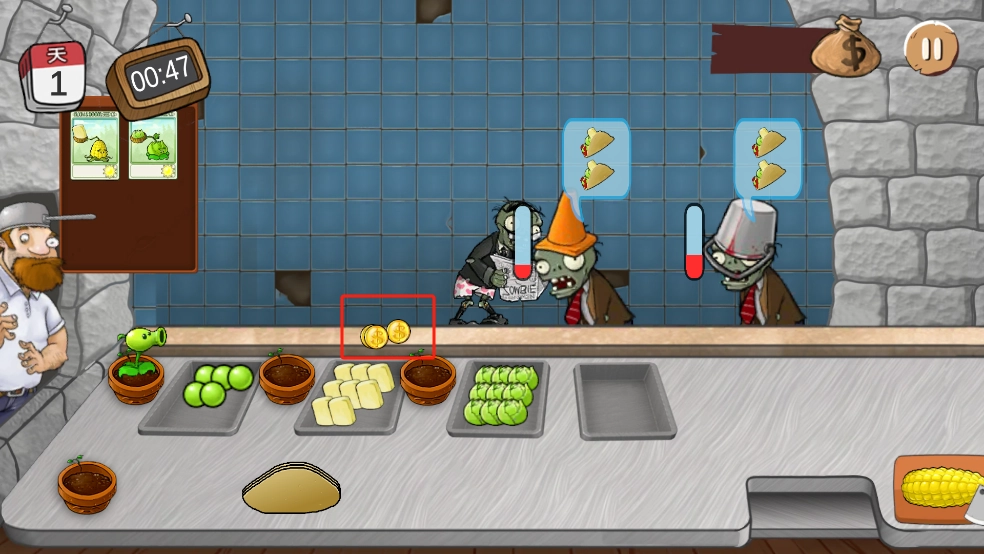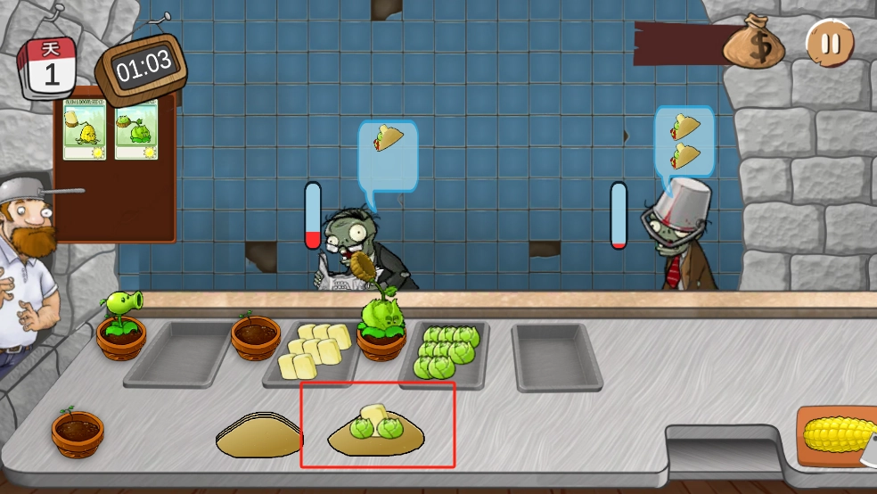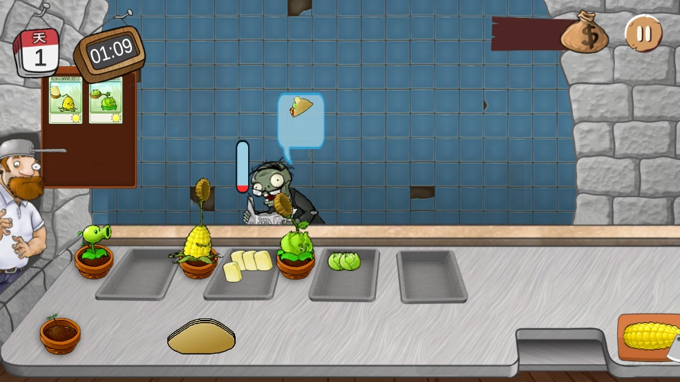 3、然而这次并非与僵尸战斗的玩法,而是要为僵尸们准备食物,完成每一份订单。