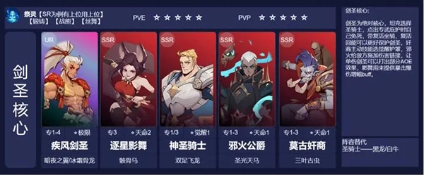 解析:剑圣是绝对核心,坦克选用圣骑士。当点出专武底护时,圣骑士自身能免死,同时带上复活坐骑,凭借复活回能能更有效地保护剑圣。奸商的主动技能选择觉醒护罩,邪火负责给敌方施加伤害链接,如此一来,单体伤害的剑圣就能打出部分群体伤害(AOE)效果。而影舞的作用则是提供暴击和暴伤增幅的增益效果(buff)。