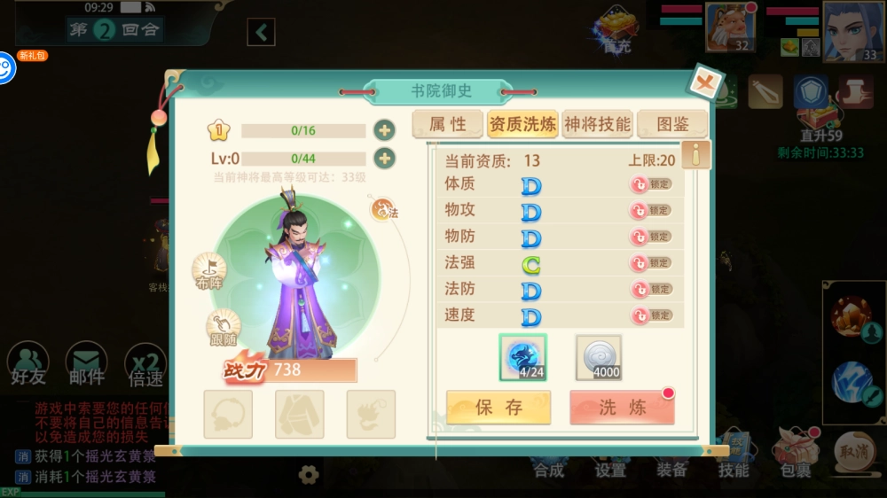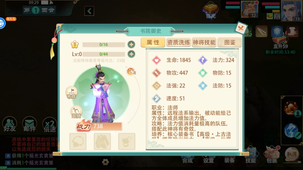 8、神将可以通过升星、升级、洗炼、打书等方式加强神将的战斗能力。