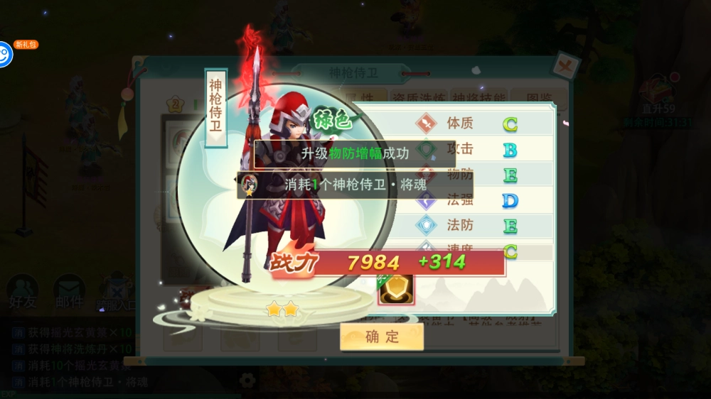 2、神将属性:神将的好坏由资质、星级来决定,对应的属性可以在神将面板查看。