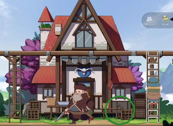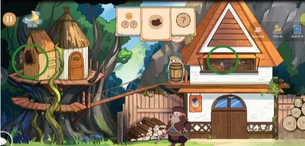 点击树上的逢魔,得到蜂窝后丢给猎人,猎人沿OA路前行获取帽子,即可过关。