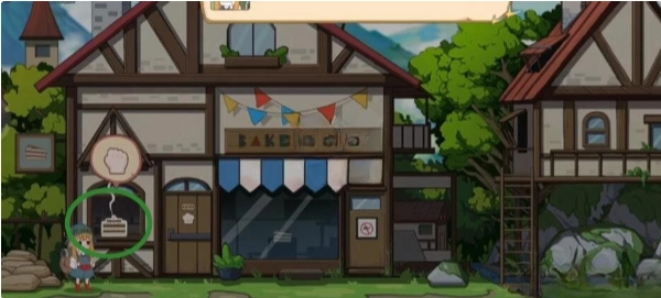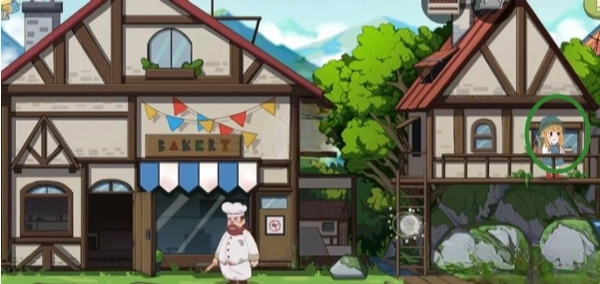把蛋糕放置在右侧房屋的窗户处,接着下去,再去取一个蛋糕。