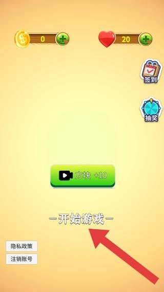 1. 画面展示出游戏初始页面,其背景风格极为简约,爱心值显示为:20 ,点击“开始游戏”即可进入场景展开游玩。