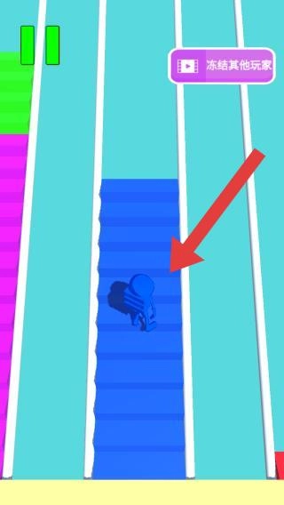 3、需把拾取到的方块搭建为阶梯,当前方砖数量不足,首位抵达的玩家为本关获胜者。