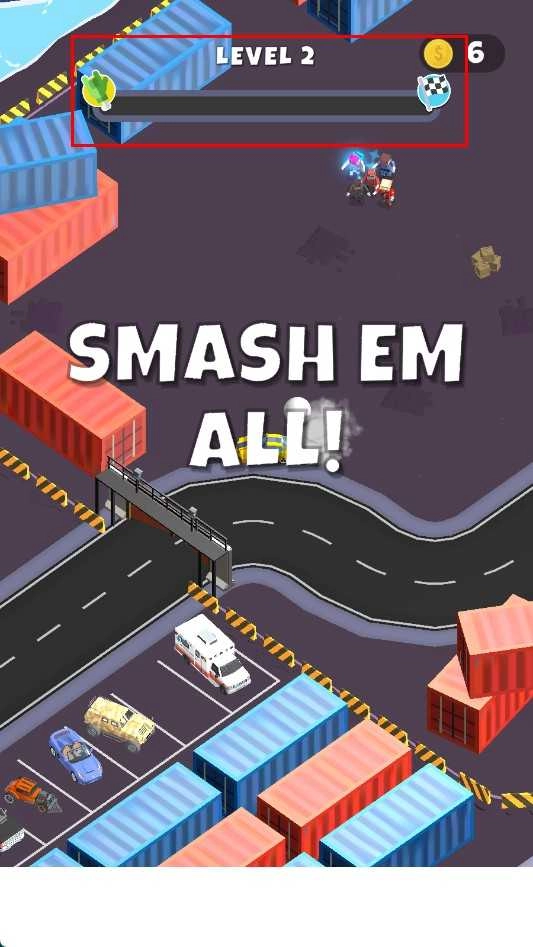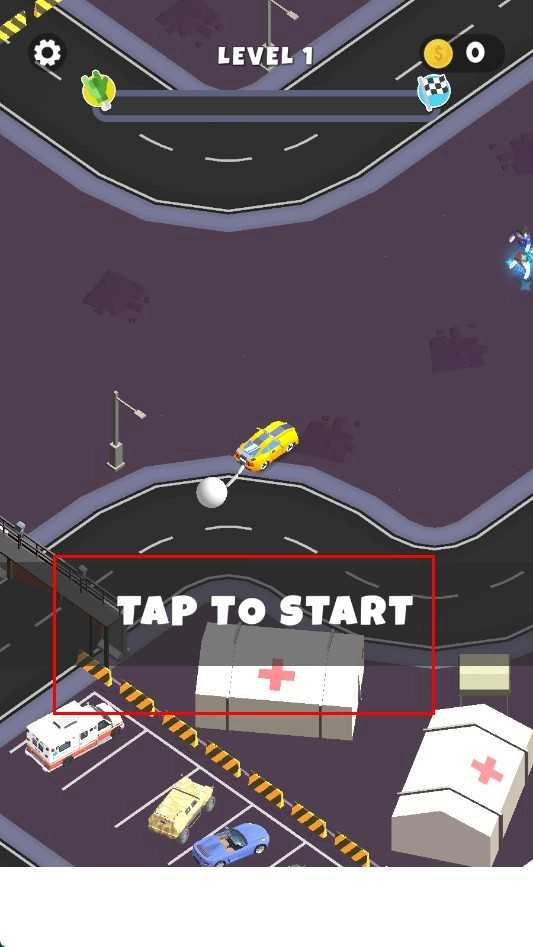 1. 进入游戏后,当看到显示“TAP TO START”的界面时,点击屏幕即可启动汽车,开启第一关的撞击挑战。