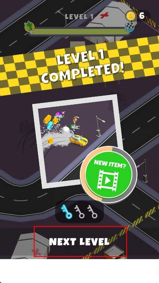 4、于关卡完成界面,轻点“NEXT LEVEL”按钮,便能进入下一关,持续开展汽车撞击挑战,畅享更多关卡。