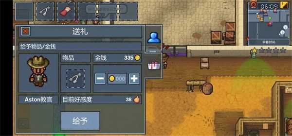 13、要是你老是对正经警官进行调戏,那警察对你的好感度恐怕会相当低。一旦警官或者狱友对你的好感度降为零,警官会一直紧跟着你,狱友则会直接动手揍你。此时,你可以给他们一些能增加好感度的物品,像香蕉、外星人玩偶之类的,只要不是违禁品,给了都能让好感度提升一点。另外,也可以给钱,大概给到40左右,警官就不会再盯着你了。