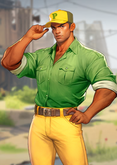 他头上戴着黄色的帽子,身着绿色上衣与黄色裤子。将近两米的挺拔身材,赋予了他一双大长腿,凭借这双长腿,他能轻松地以飞踹之势击退敌人。很难想象,这样一个武力值颇高的人,曾经居然从事的是脑力工作。