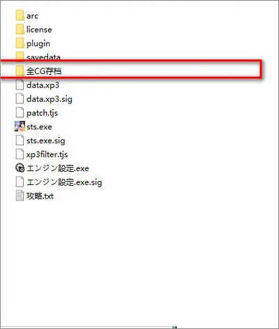 再补充说明一下全cg存档的问题。游戏宣传声称带有全cg存档,但当自己实际进入游戏游玩时却发现没有。那该如何解决呢?其实方法很简单,只需将全cg存档提取出来,覆盖替换自己原本的存档,具体方法如下: