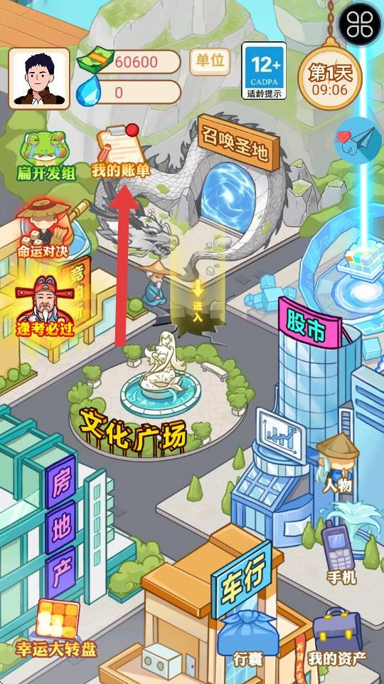 1. 在游戏的主界面当中,点击【我的账单】,即可进入账单界面。