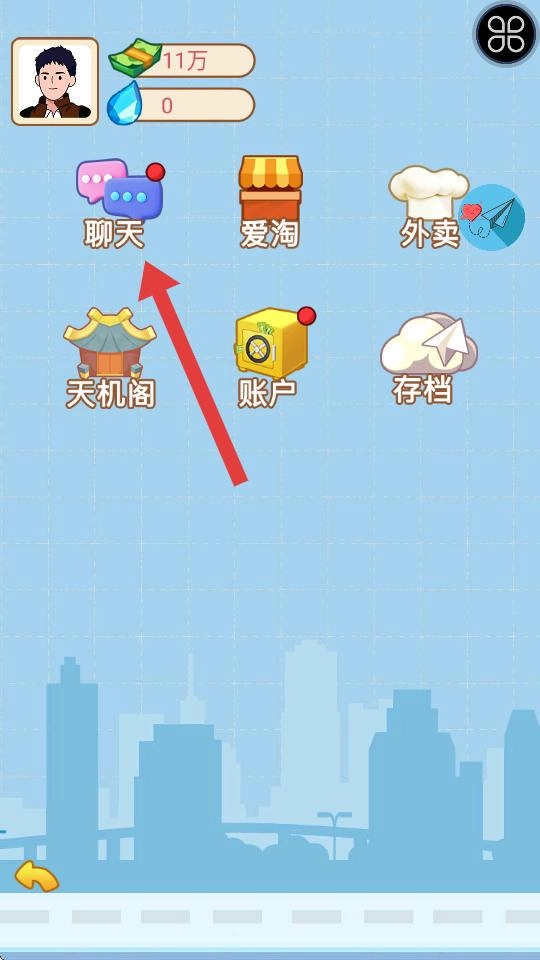3、偿还完债务后,拿出手机并打开,点击屏幕上的【聊天】图标,随即进入聊天界面。