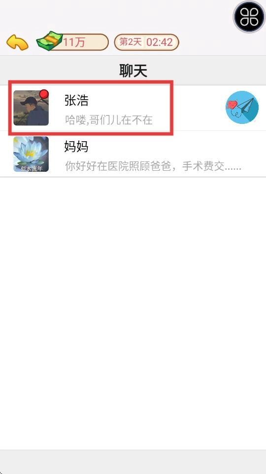 4、于聊天界面里,留意带有红点提示的联系人(像张浩这类),并与之对话以推动剧情发展。
