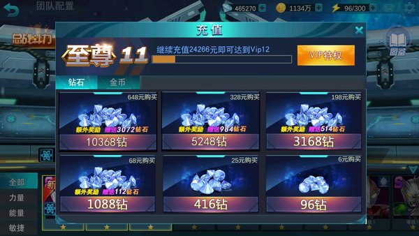 3、直接点击充值可免充值无限购买大量金币和钻石