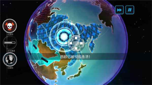 首先,若具备侦查科技,你能在几秒内观察地球上其余核势力,若无此科技则无法进行。之后,游戏画面会进入一片迷雾状态,此时你仅能看见自身领土及其周边区域。下面为你解释游戏中的图标,你需先点击一块自己的领土。