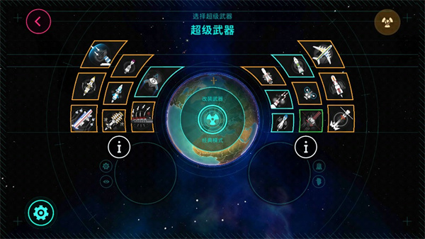 5、玩家选定核势力后,便会进入超级武器选择界面。在此界面,玩家可从两种超级武器中挑选,但在游戏实际过程中仅能使用一种。这些超级武器各具特色,多数具备攻击性,不过也存在防御性的,像铁穹防空系统。待玩家选好超级武器并点击开始,核战即刻爆发。