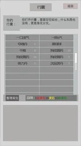 婆婆去领取80 - 100的碎灵石(哪怕数量少,就像蚊子腿,好歹也是肉呀),新手装备全部穿戴好,破箱子里的东西一件不落全拿走,轻功功法先学起来并且装备上。要是战斗时发现打不过,那就赶紧逃跑。还有,记得把一口浊气吸收掉,一直吸到盈满状态,这样才能够提升炼体等级。