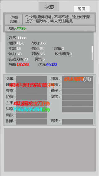在进入异世修真人游戏之前,会随机刷取后天属性。这里说明一下,武道对功法的升级速度有影响,每次功法升级所提升的量等同于武道值。